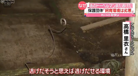 脱走を受けて動物愛護団体のま~ん(笑)がテレビに出てきて飼育環境を批判