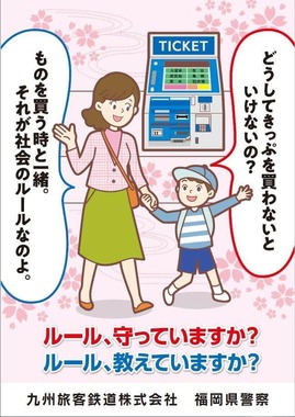 「以前から不正乗車対策の一環としてポスターの掲出等の啓蒙活動を行っておりましたが、今回、福岡県警など警察のご理解とご協力を頂き新たなデザインのポスターを作成しました。引き続き、お客様に正しい運賃をお支払いいただく環境づくりに取り組みたいと思います」