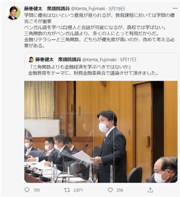 【悲報】「三角関数より金融知識」発言の議員、言い訳すればするだけ墓穴を掘る Twitter Facebook はてブ LINE コピー 2022.05.22 スポンサーリンク 1 : 風吹けば名無し :2022/05/22(日) 11:01:09.82 ID:eakdBAe10藤巻「ベンガル語を学べば2億人と話せるが三角関数の方が役に立つから誰も勉強しない」ツイカス転載元スレッド:https://eagle.5ch.net/test/read.cgi/livejupiter/1653184869/ 続きを読む