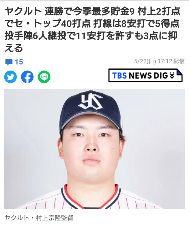 ヤクルト・村上宗隆監督爆誕wwwww Twitter Facebook はてブ LINE コピー 2022.05.22 スポンサーリンク 1: それでも動く名無し 2022/05/22(日) 17:31:35.24 ID:oJf4aqX30 https://news.yahoo.co.jp/articles/555abb497d5ed201f4d225c0e5b937c6c2a5913c 4: それでも動く名無し 2022/05/22(日) 17:32:11.00 ID:JGb0a96m0 これは草 12: それでも動く名無し 2022/05/22(日) 17:33:28.35 ID:pzOsSBvdr マジじゃねーか 続きを読む