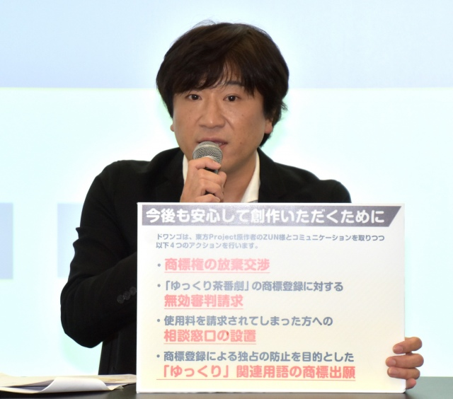 ドワンゴは23日、ニコニコ動画などの人気の「ゆっくり解説動画」に絡み、特定ユーザーから「ゆっくり茶番劇」が文字商標として登録されて波紋を広げている件について、都内で会見を開いた。
