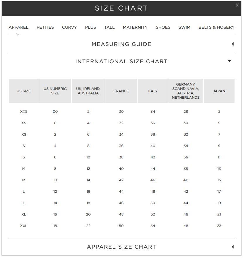 loft.comのサイズ表によると米国の女性服の平均サイズである18は日本の23号に相当する。