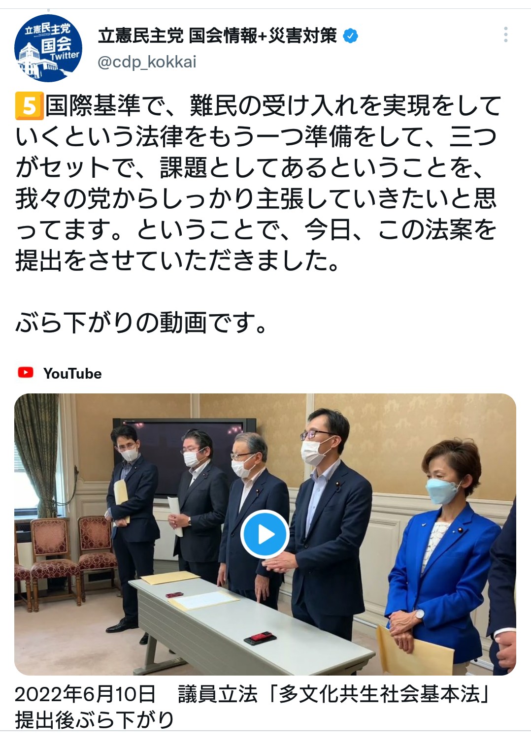 — 立憲民主党 国会情報+災害対策 (@cdp_kokkai) June 10, 2022