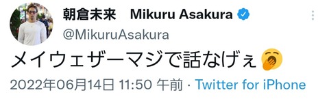 【悲報】“路上の伝説”朝倉未来さん、メイウェザーの悪口をネットに書き込むwwwwwwww Twitter Facebook はてブ LINE コピー 2022.06.14 スポンサーリンク 1:風吹けば名無し:2022/06/14(火) 16:48:50.61 ID:cqcNMl9x0 かっけえ 3:風吹けば名無し:2022/06/14(火) 16:49:49.00 ID:X0IU5brXa 英語わからないからしゃーないな 4:風吹けば名無し:2022/06/14(火) 16:50:01.00 ID:QKABgY170 どうせボコられるんやから悪口くらいええやろ 続きを読む
