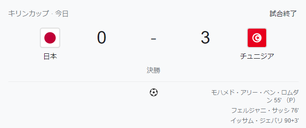 「キリンカップ決勝でチュニジア代表と対戦。前半の決定機逸も響き、後半に3失点を喫して0-3で敗れました」 pic.twitter.com/5up0Ad4Dad