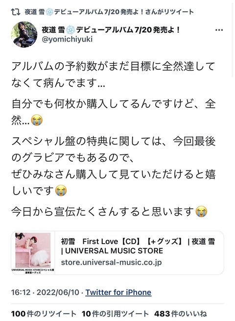 【画像】歌手デビューした声優「アルバム買ってください😂」 Twitter Facebook はてブ LINE コピー 2022.06.15 スポンサーリンク 1:以下、?ちゃんねるからVIPがお送りします:2022/06/14(火) 17:07:42.058 ID:X4LnOrAUd.net 夜道雪さん 続きを読む